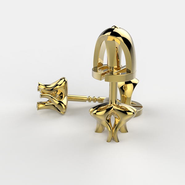Креативная оправа для пусет из желтого золота 750 пробы весом 4,18г. В наличии для центрального камня диаметром от 0,50 до 1,00ct.